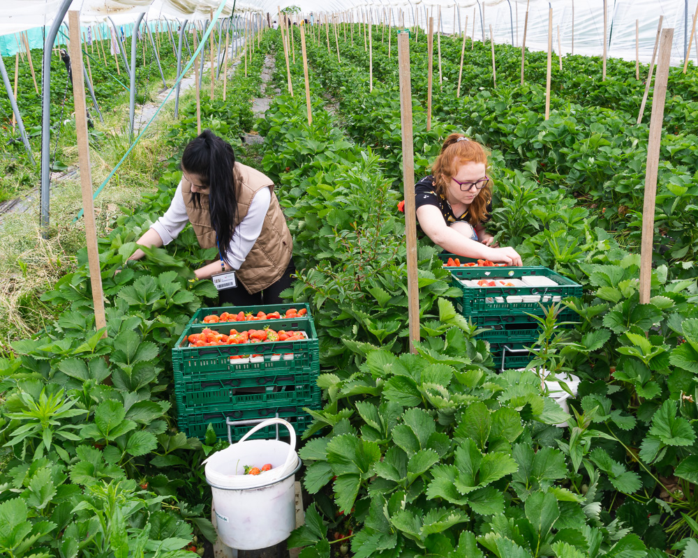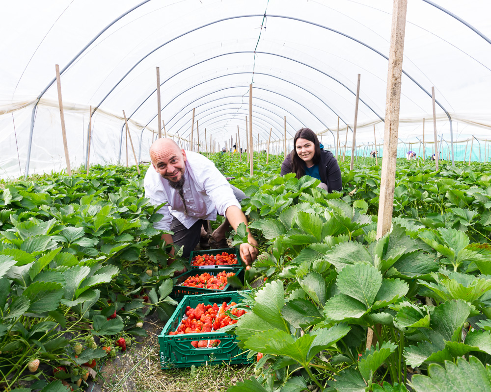 Sie leiten ihren Hof mit einem festangestellten Mitarbeiter und je nach Saison zwischen 5 und 45 Saisonarbeitern. Auf einer Fläche von 9,7 Hektar Freilandanbau und Folienhäuser bauen sie über 15 verschiedene Kulturen an, darunter auch Svens Lieblingsgemüse – die Schlangengurke. Davon verputzt er im Sommer täglich mindestens Eine. Dass ihre gesamte Anbaufläche vom Wohnhaus aus zu Fuß erreichbar ist, ist nicht nur praktisch, sondern ökologisch gesehen ausgezeichnet.