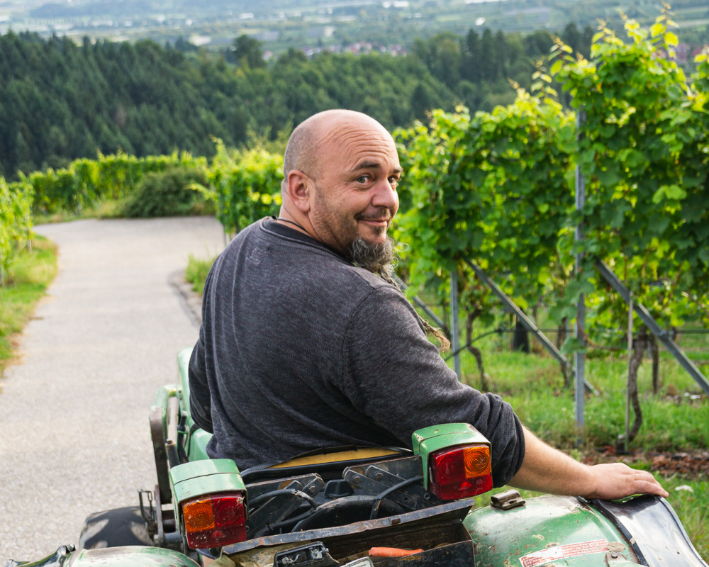 Während Alexandra mit Landwirtschaft aufgewachsen ist, ist Sven kein typischer Landwirt, er hatte sogar lange nichts mit Landwirtschaft am Hut. Die Natur hat ihn allerdings fasziniert: „Die Natur gleicht das aus, was wir Menschen falsch machen. Es gibt außerdem kein Jahr, das so ist wie das andere. Dieses Unplanbare, das gefällt mir“. Über eine Abendschule hat Sven den Lehrgang zum Winzer im Nebenerwerb absolviert und sich darüber hinaus in viele landwirtschaftliche Themen hineingearbeitet. Bei der Hofübernahme war eines sofort klar, „wenn, dann nur Bio. Und wenn, dann richtig", sagt er.